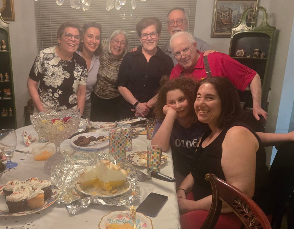 So……a relatively quiet day in St. Louis yesterday largely devoted to family, and ending with dinner with first cousins all around. Here is our delightful dinner group, without my cousin Donna and me, who were too intent in our conversation to join in.