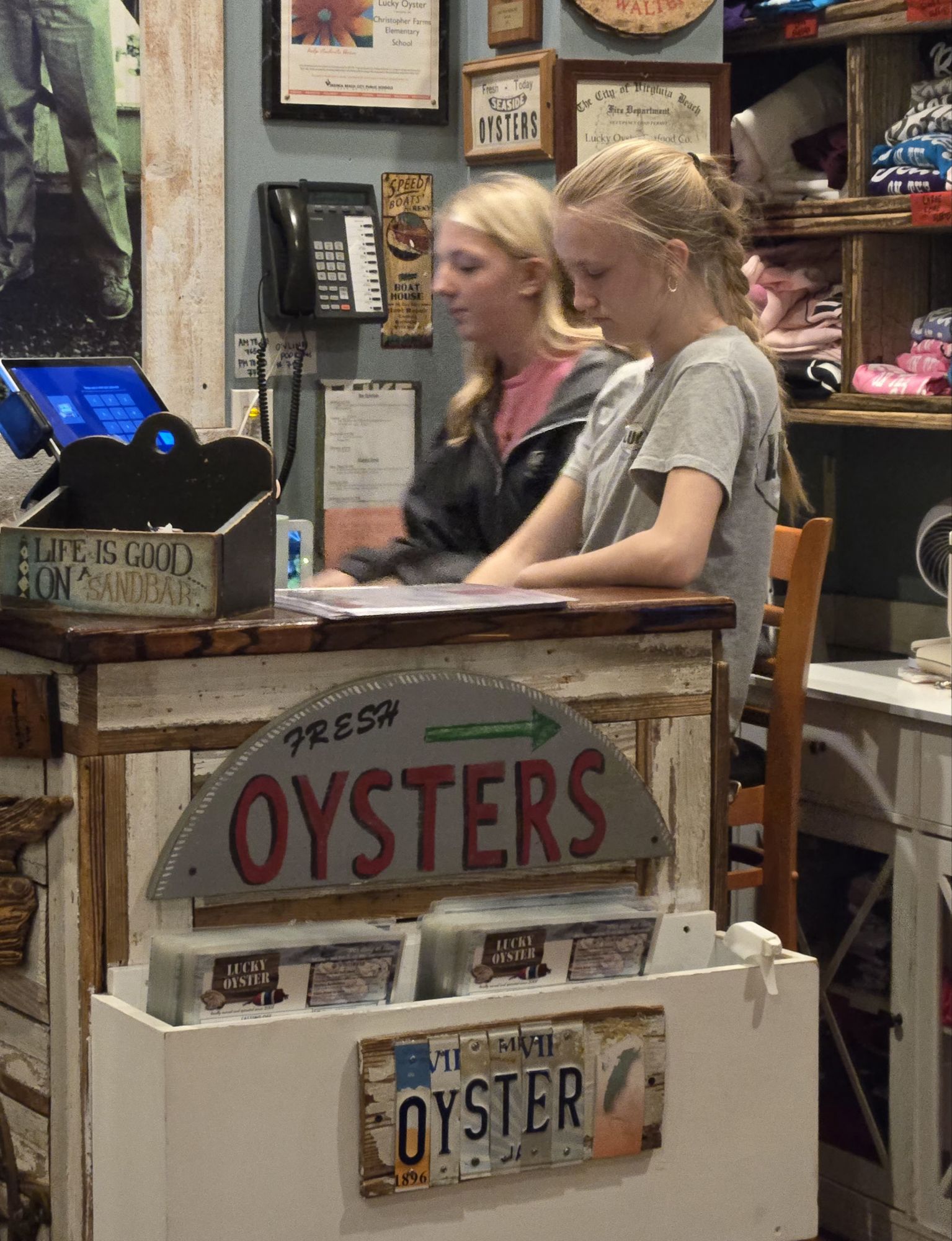 After horrendous traffic on I-64 after we left US 17, we pulled into Virginia Beach, got an oceanfront room at the Capes Hotel ($88 for an oceanview room in February), we picked up my cousin Susan Day and had dinner at the very busy and quite good Lucky Oyster.