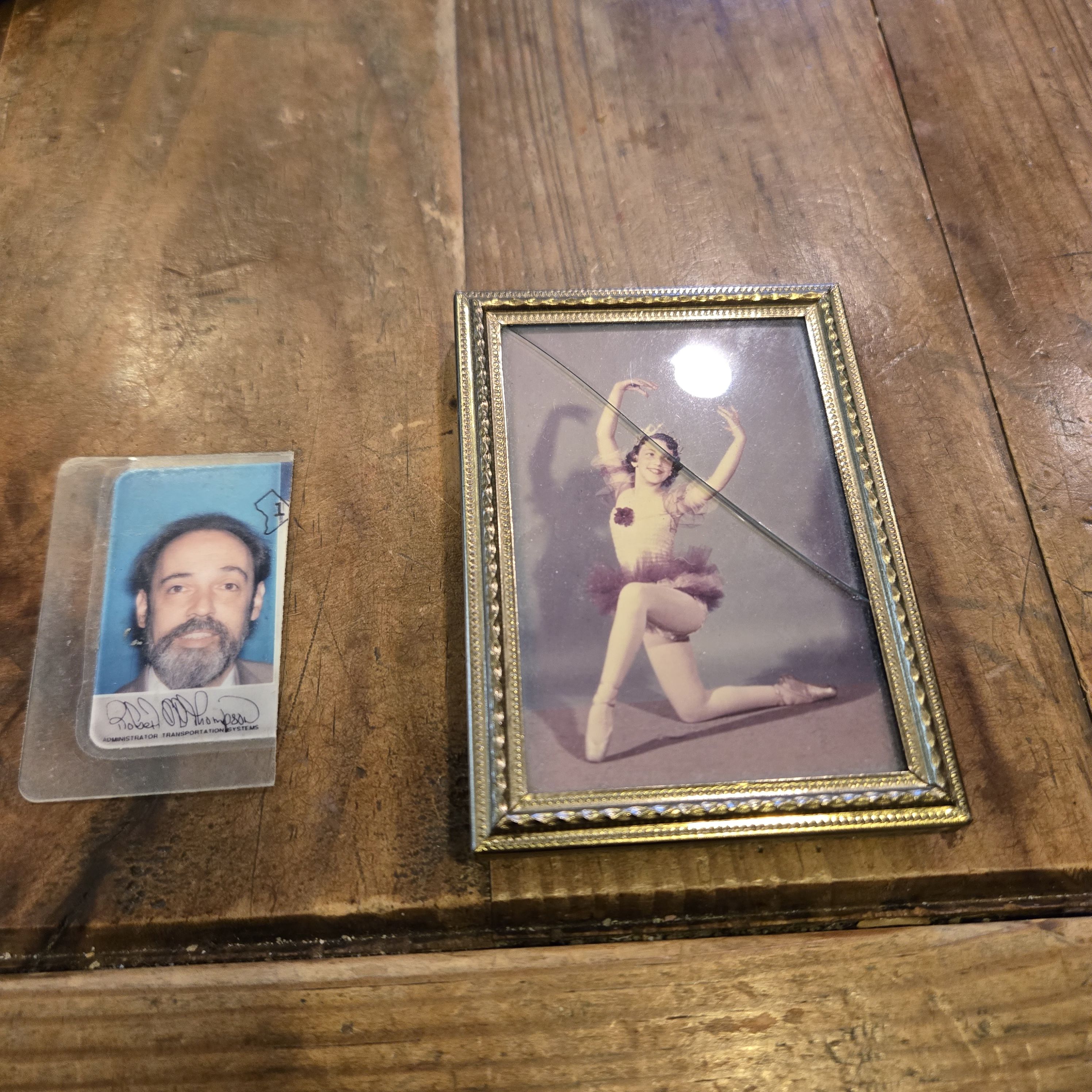 Getting tired? Here we have an old photo from a DC driving license, a picture of my sister, the ballerina, when she was 10 or so, and a luggage tag of my mother’s.