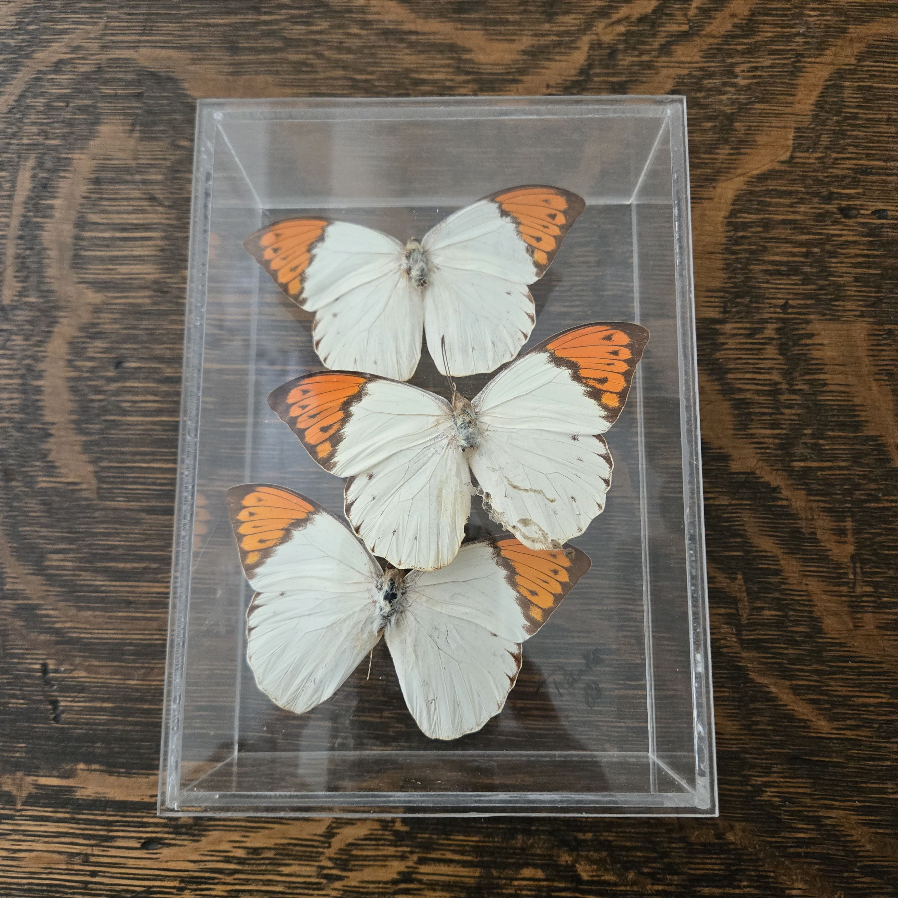The beautiful orange-tip butterflies are found in various Asian locations. But these three were found in a shop in San Juan, Puerto Rico. I have had them about 40 years, and they haven’t aged a bit. Mounting a butterfly is probably not a nice thing to do, and these are the only ones I have. But I have long wished I had more than I do.