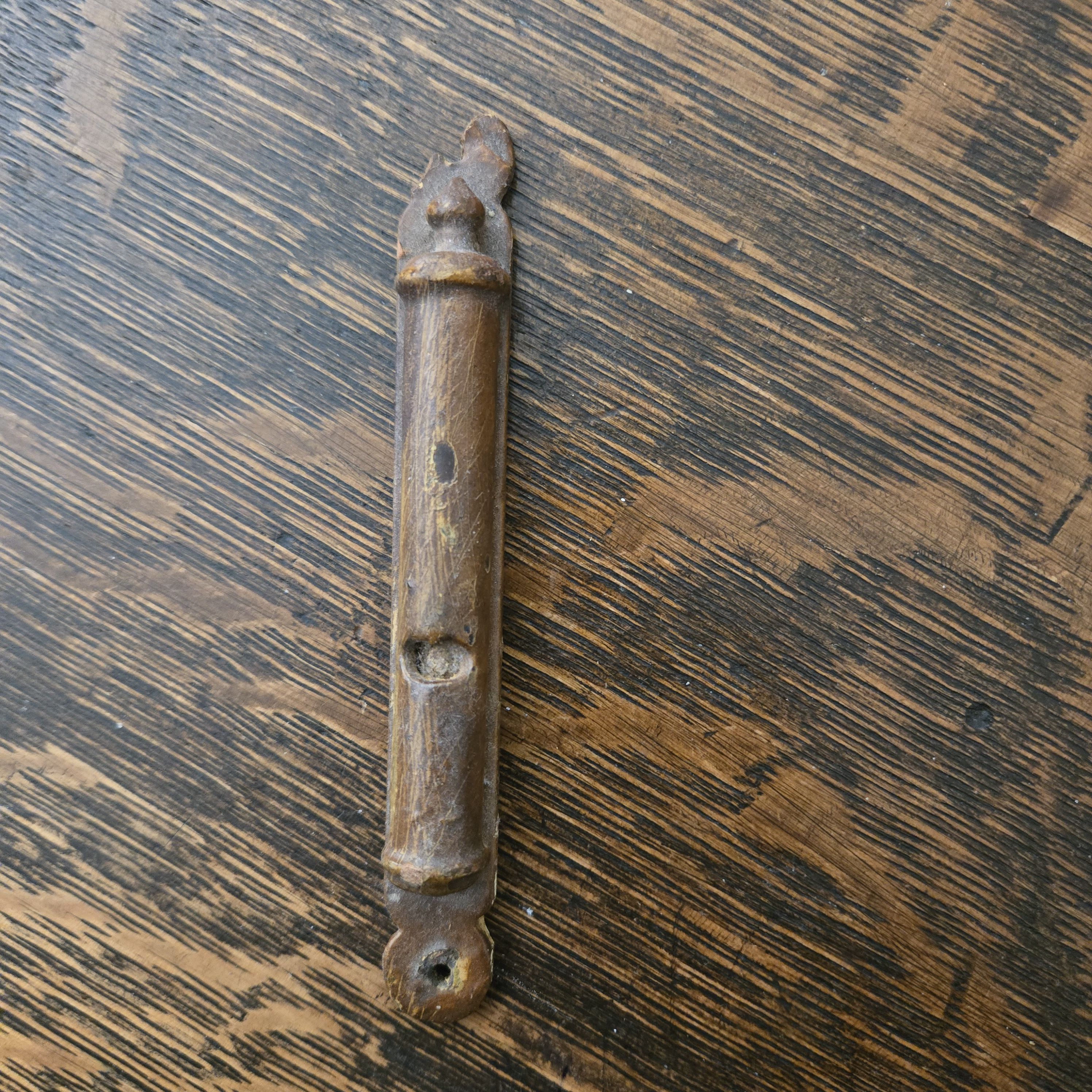 This mezuzah, I think came from Europe with Edie’s father. I have forgotten exactly why I think that, but that is indeed what I think. But it is odd, because it appears to have been carved from one piece of wood, meaning that the Biblical quote required to be inside it is nowhere to be found. I should research this.