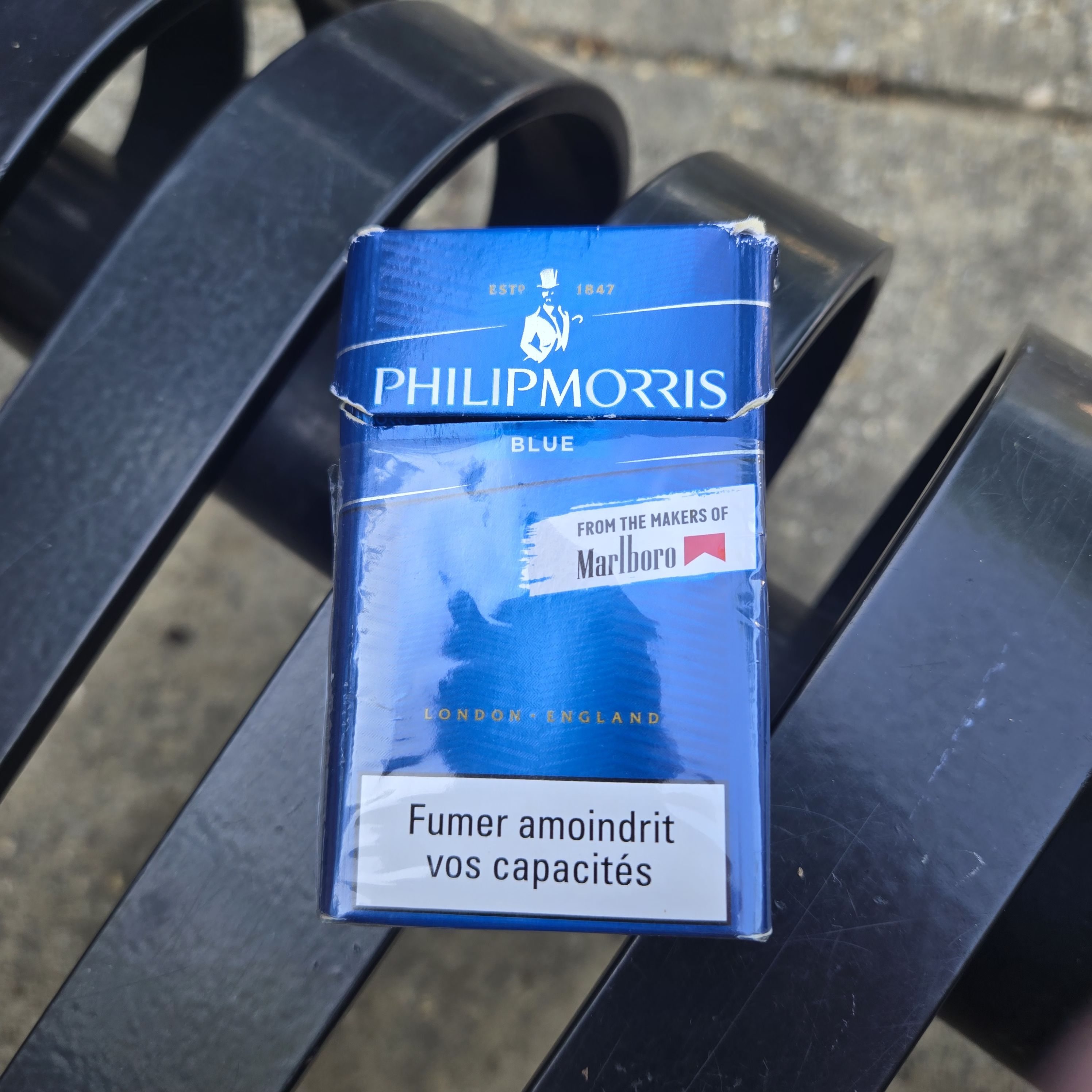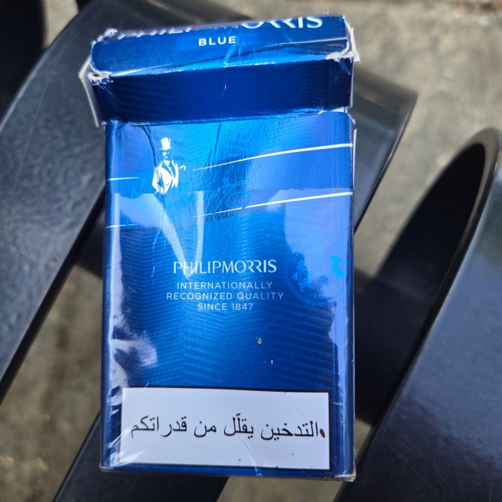 So  think how surprised I was this morning, about 3000 steps from my house, to find an empty package of Philip Morris cigarettes from (not France as you may think from the front of the pack), Algeria.