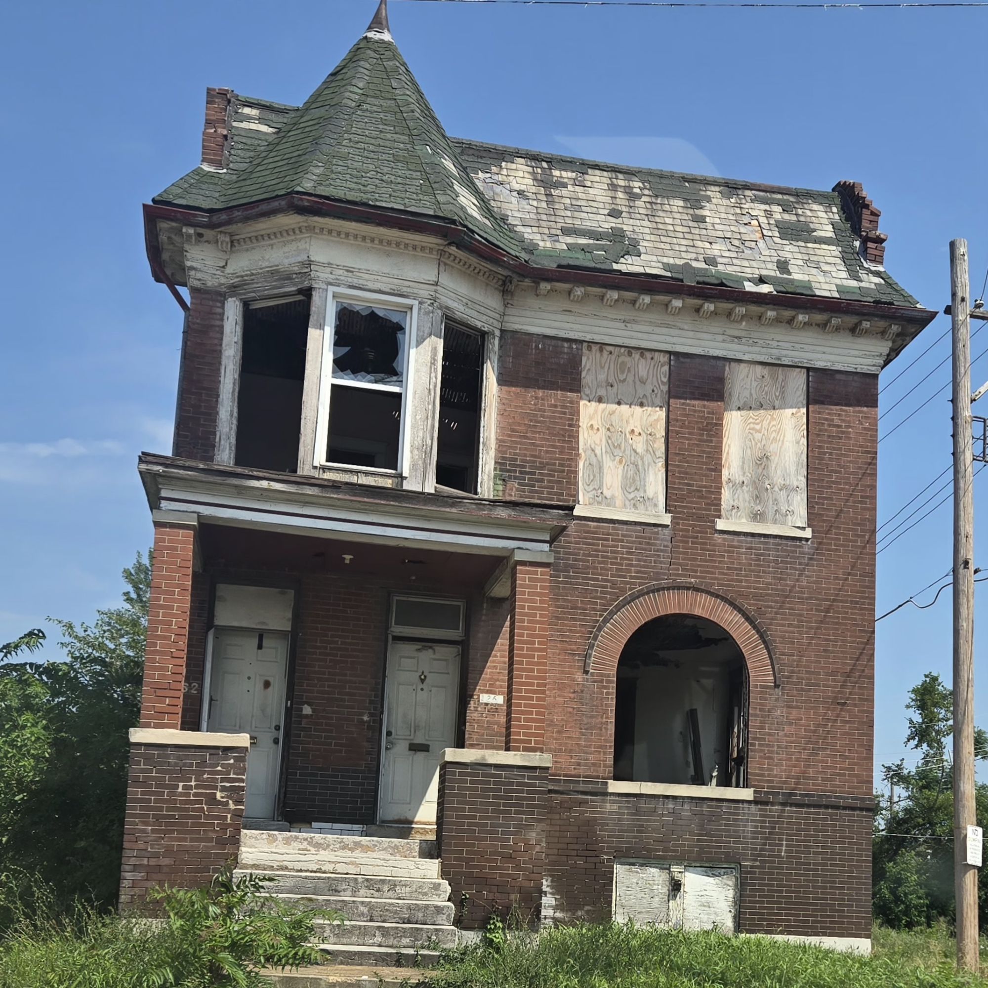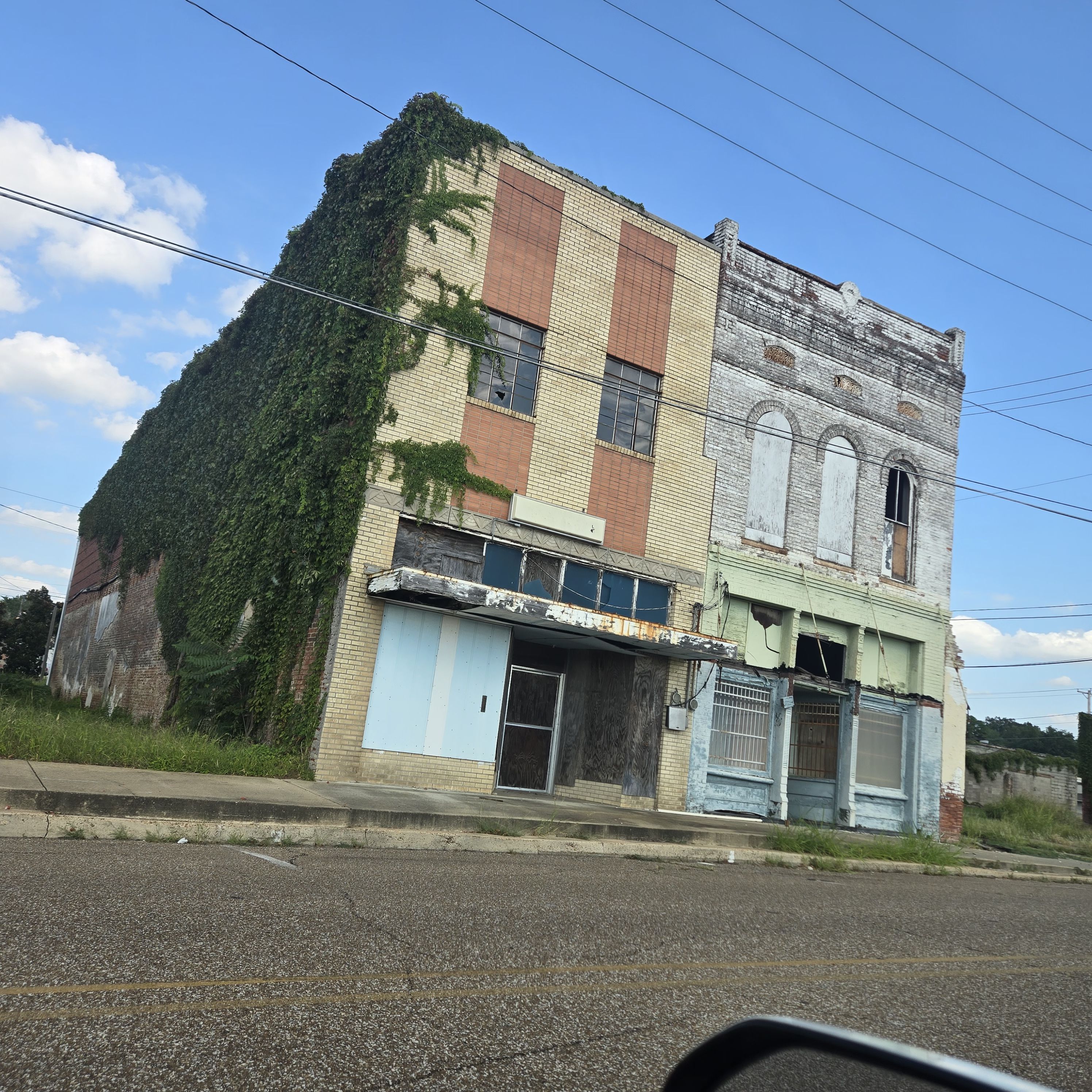 We got off the Interstate at Brinkley, a very small town where every building is empty and falling down. The homes and farms looked better and the few towns we drove through didn’t look healthy. Unless you compare them with Brinkley. Most looked like this.