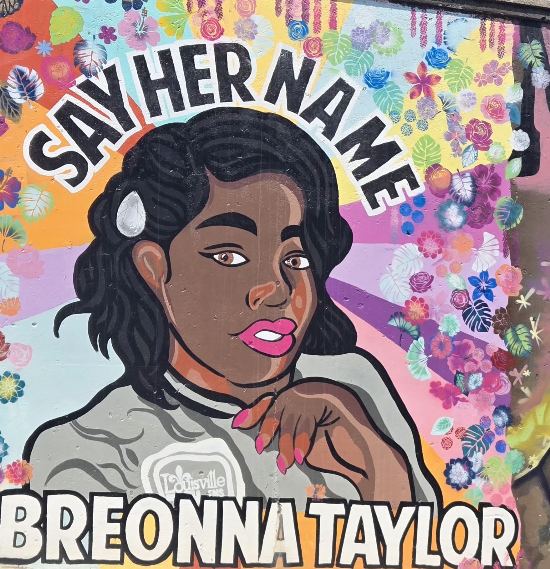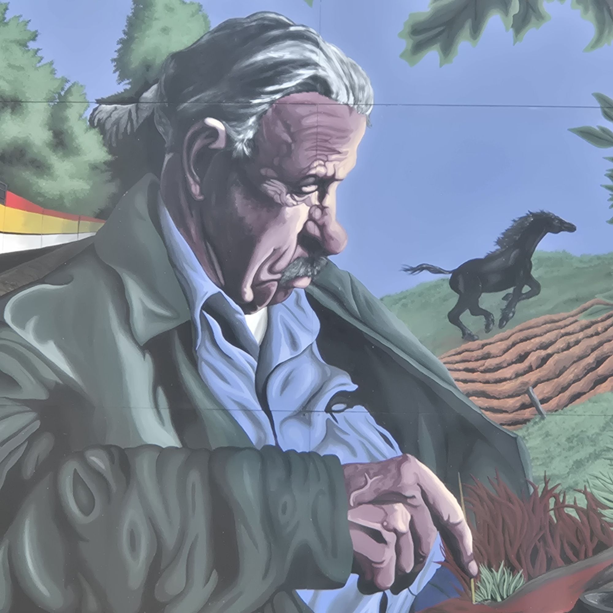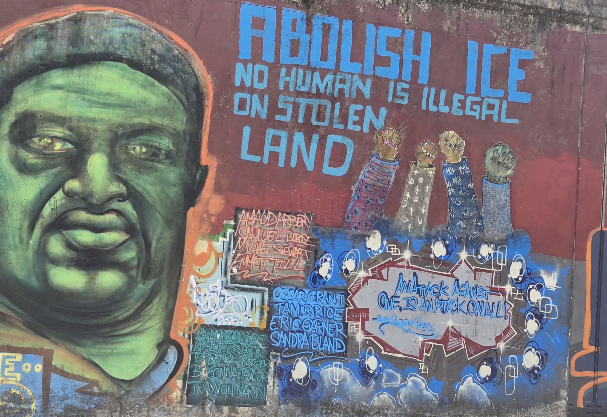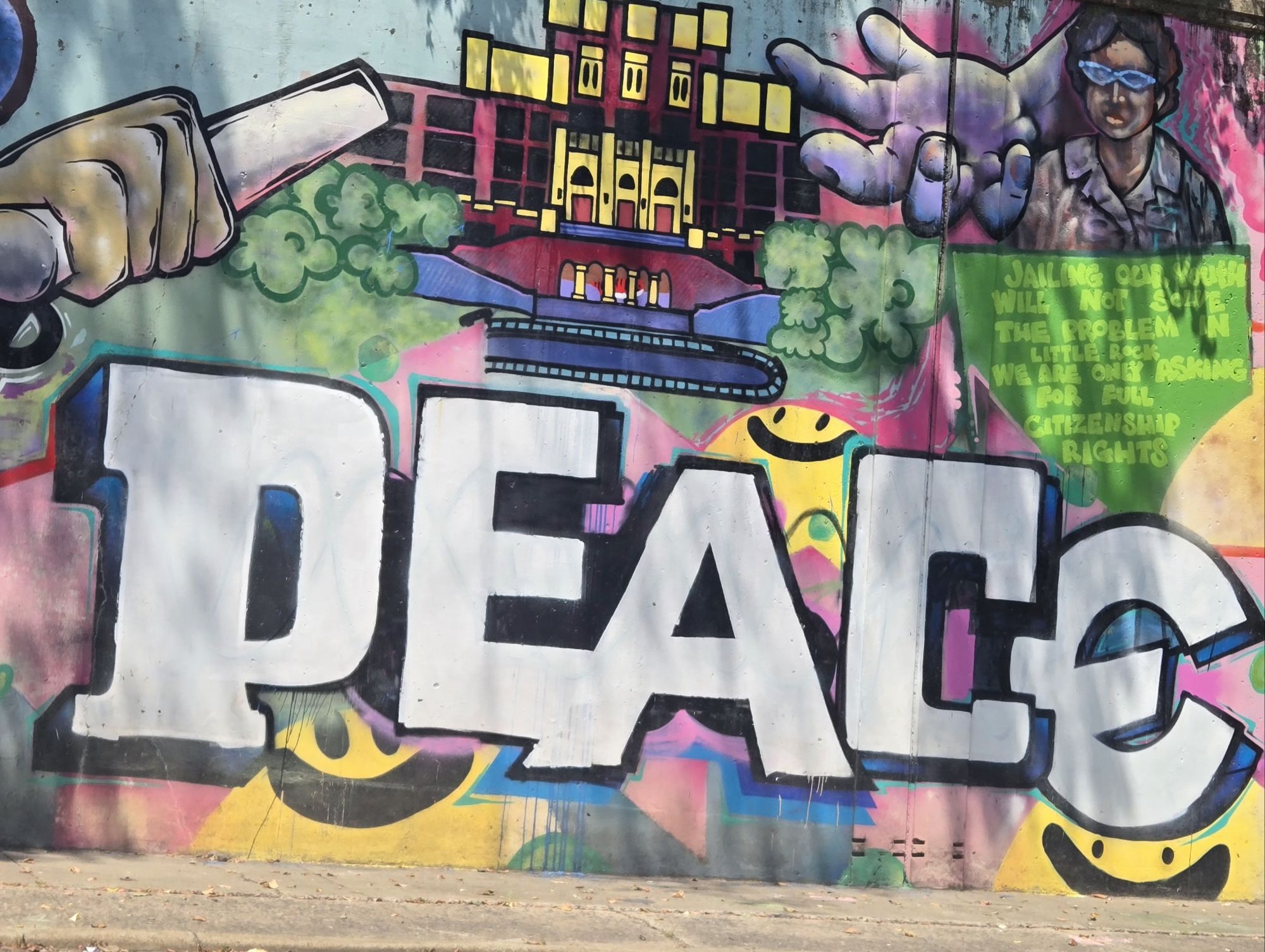 If you drive away from the capitol building in the direction opposite downtown, you see some important works of street art lining the walls on both sides of the road. Here are a few examples: