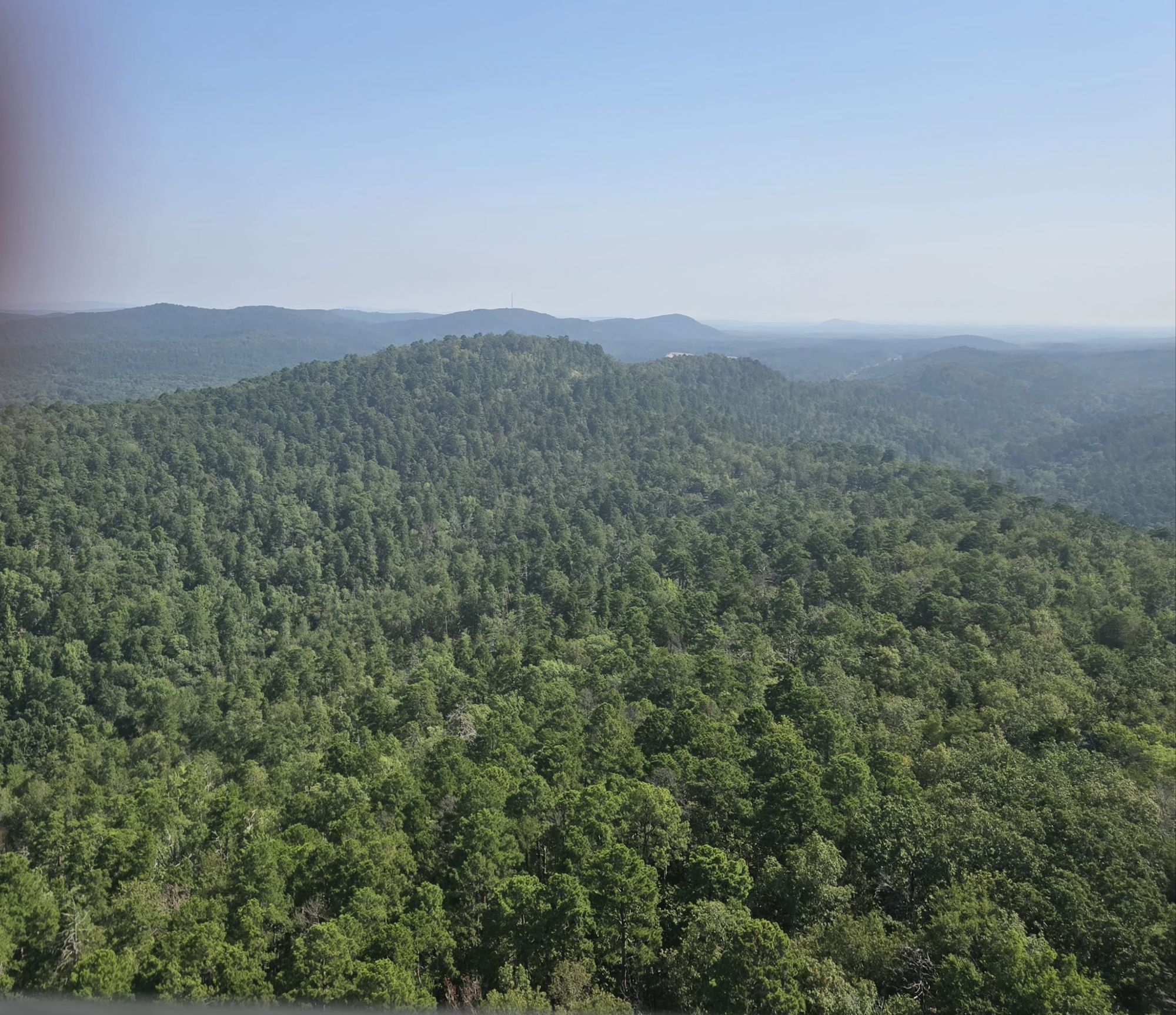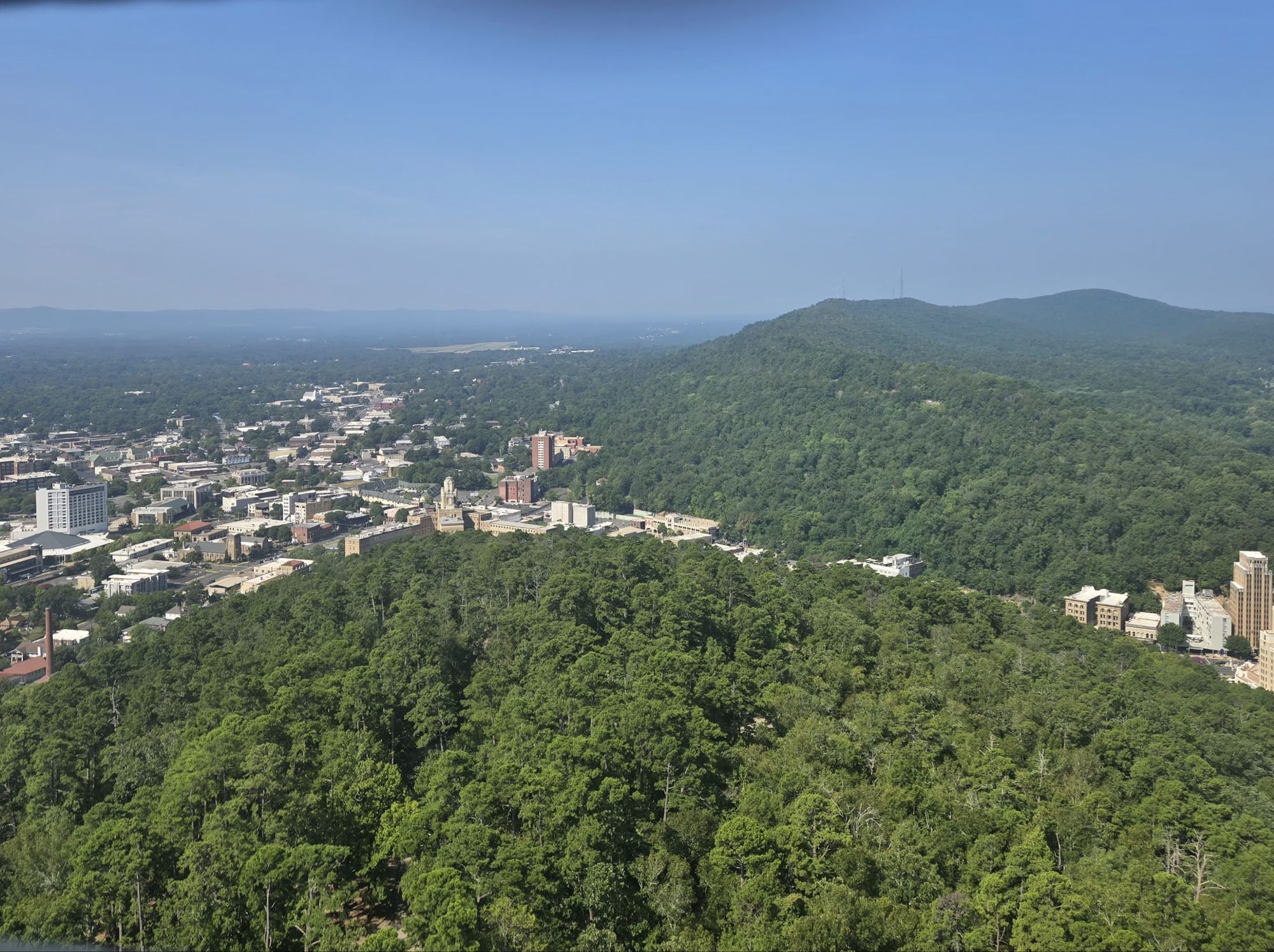 Before we left Hot Springs, we drove by the eight 100+ year old bath houses, the Gangster Museum, and the famous Arlington Hotel. Then we drove the 3.5 mile loop to the top of the mountain and then took the elevator up to the top of the tower on top of the mountain, from where we could see…..everything.